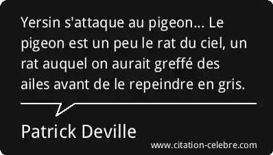 Yersin s'attaque au pigeon... Le pigeon est un peu le rat du ciel, un rat auquel on aurait greffé des ailes avant de le repeindre en gris.