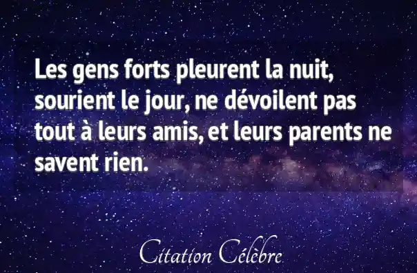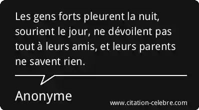 Les gens forts pleurent la nuit, sourient le jour, ne dévoilent pas tout à leurs amis, et leurs parents ne savent rien.