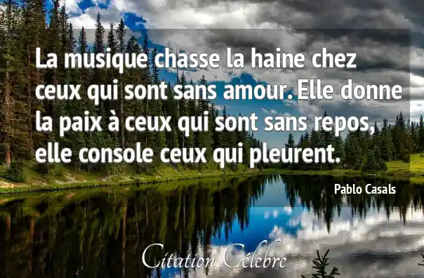 La musique chasse la haine chez ceux qui sont sans amour. Elle donne la paix à ceux qui sont sans repos, elle console ceux qui pleurent.