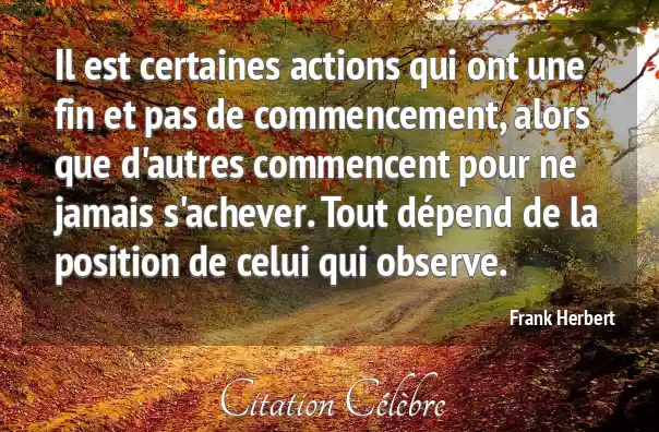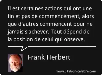Il est certaines actions qui ont une fin et pas de commencement, alors que d'autres commencent pour ne jamais s'achever. Tout dépend de la position de celui qui observe.