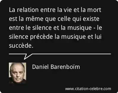 La relation entre la vie et la mort est la même que celle qui existe entre le silence et la musique - le silence précède la musique et lui succède.