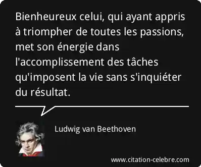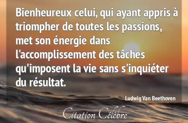 Bienheureux celui, qui ayant appris à triompher de toutes les passions, met son énergie dans l'accomplissement des tâches qu'imposent la vie sans s'inquiéter du résultat.