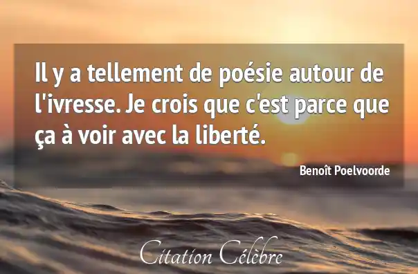 Il y a tellement de poésie autour de l'ivresse. Je crois que c'est parce que ça à voir avec la liberté.