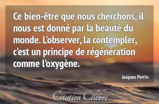 Ce bien-être que nous cherchons, il nous est donné par la beauté du monde. L'observer, la contempler, c'est un principe de régénération comme l'oxygène.