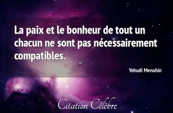 La paix et le bonheur de tout un chacun ne sont pas nécessairement compatibles.