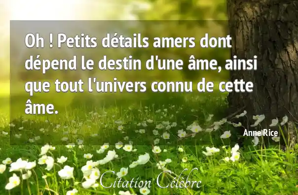 Oh ! Petits détails amers dont dépend le destin d'une âme, ainsi que tout l'univers connu de cette âme.