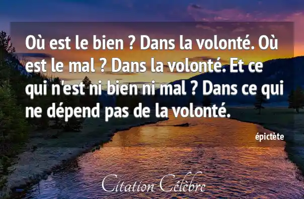 Où est le bien ? Dans la volonté. Où est le mal ? Dans la volonté. Et ce qui n'est ni bien ni mal ? Dans ce qui ne dépend pas de la volonté.