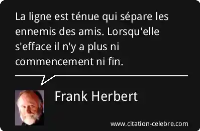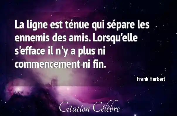 La ligne est ténue qui sépare les ennemis des amis. Lorsqu'elle s'efface il n'y a plus ni commencement ni fin.