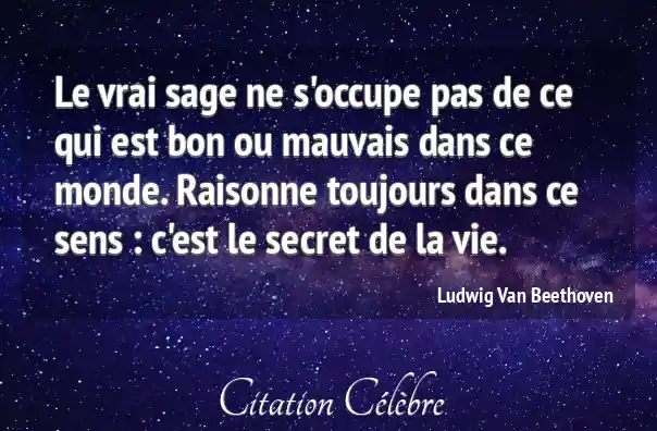 Le vrai sage ne s'occupe pas de ce qui est bon ou mauvais dans ce monde. Raisonne toujours dans ce sens : c'est le secret de la vie.