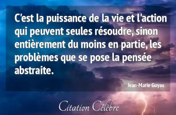C'est la puissance de la vie et l'action qui peuvent seules résoudre, sinon entièrement du moins en partie, les problèmes que se pose la pensée abstraite.