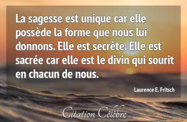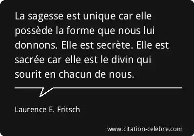 La sagesse est unique car elle possède la forme que nous lui donnons. Elle est secrète. Elle est sacrée car elle est le divin qui sourit en chacun de nous.