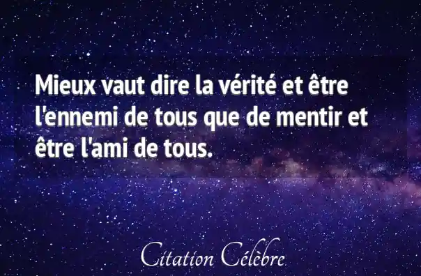 Mieux vaut dire la vérité et être l'ennemi de tous que de mentir et être l'ami de tous.