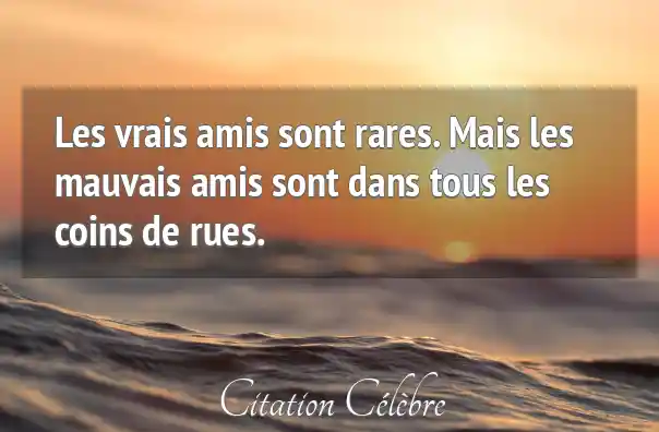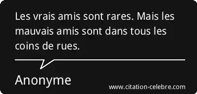 Les vrais amis sont rares. Mais les mauvais amis sont dans tous les coins de rues.