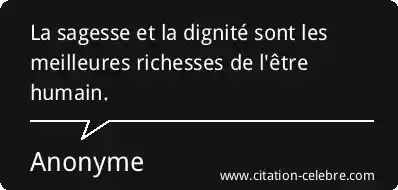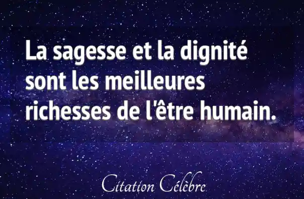 La sagesse et la dignité sont les meilleures richesses de l'être humain.