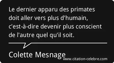 Le dernier apparu des primates doit aller vers plus d'humain, c'est-à-dire devenir plus conscient de l'autre quel qu'il soit.