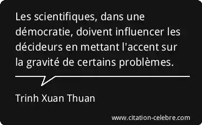 Les scientifiques, dans une démocratie, doivent influencer les décideurs en mettant l'accent sur la gravité de certains problèmes.