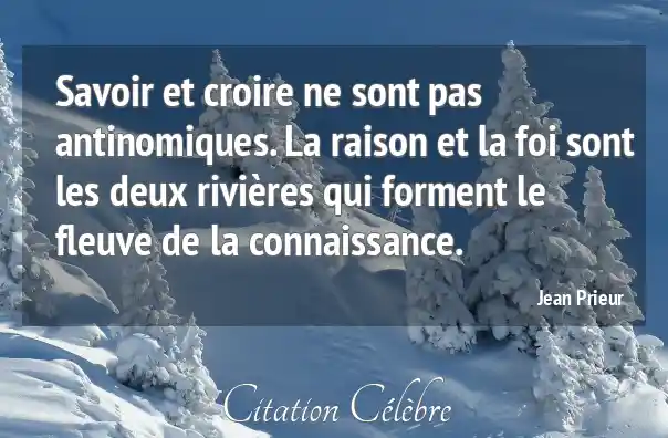 Savoir et croire ne sont pas antinomiques. La raison et la foi sont les deux rivières qui forment le fleuve de la connaissance.