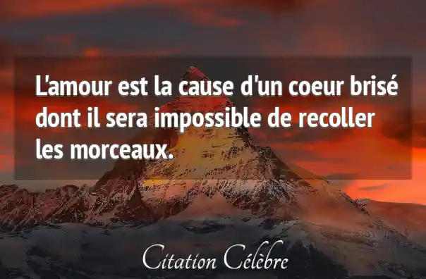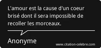 L'amour est la cause d'un coeur brisé dont il sera impossible de recoller les morceaux.
