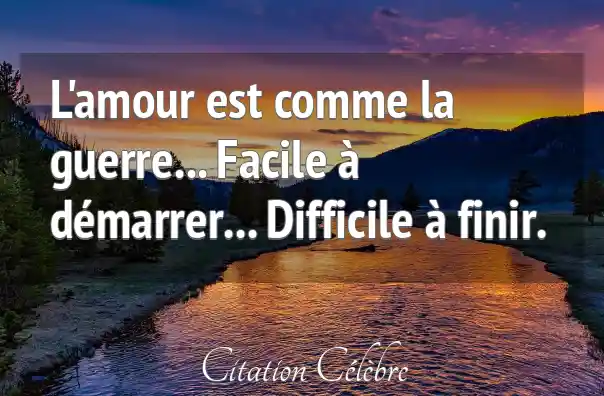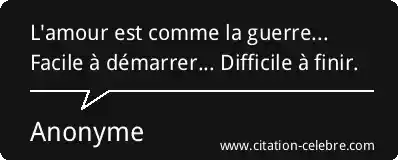 L'amour est comme la guerre... Facile à démarrer... Difficile à finir.