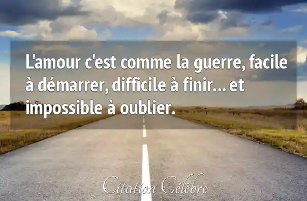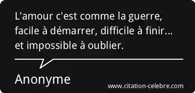 L'amour c'est comme la guerre, facile à démarrer, difficile à finir... et impossible à oublier.