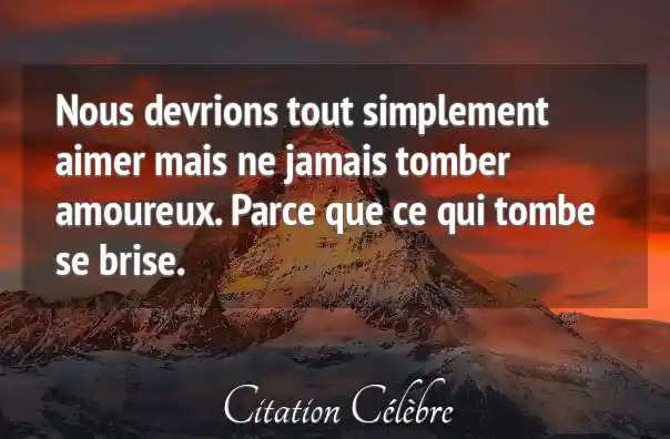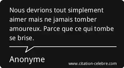 Nous devrions tout simplement aimer mais ne jamais tomber amoureux. Parce que ce qui tombe se brise.