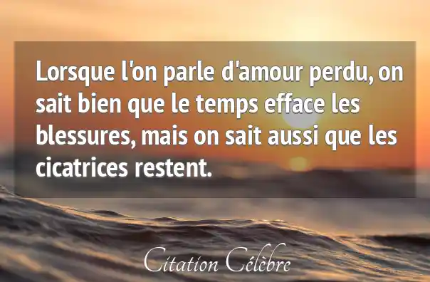 Lorsque l'on parle d'amour perdu, on sait bien que le temps efface les blessures, mais on sait aussi que les cicatrices restent.