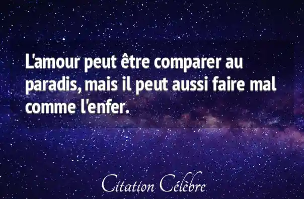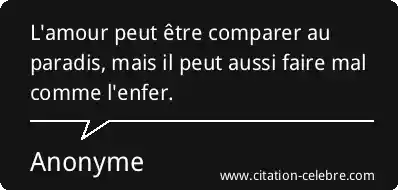 L'amour peut être comparer au paradis, mais il peut aussi faire mal comme l'enfer.