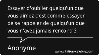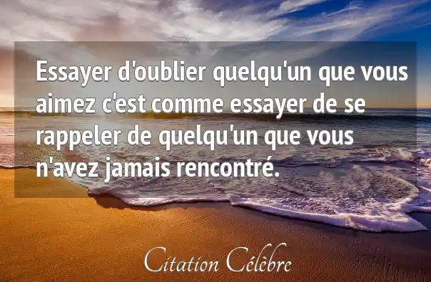 Essayer d'oublier quelqu'un que vous aimez c'est comme essayer de se rappeler de quelqu'un que vous n'avez jamais rencontré.