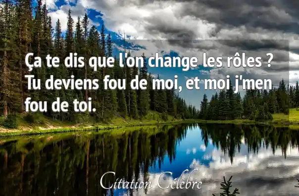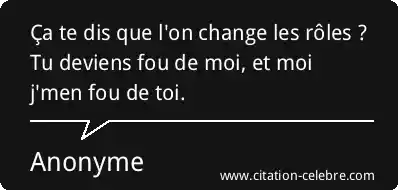Ça te dis que l'on change les rôles ? Tu deviens fou de moi, et moi j'men fou de toi.