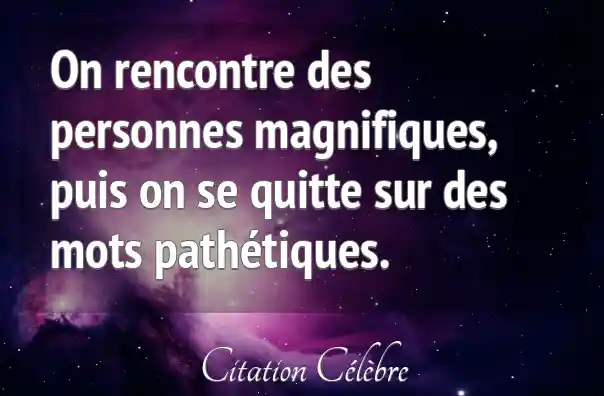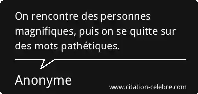 On rencontre des personnes magnifiques, puis on se quitte sur des mots pathétiques.