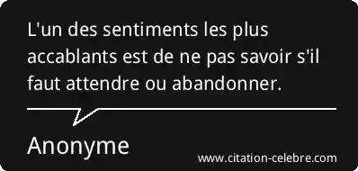 L'un des sentiments les plus accablants est de ne pas savoir s'il faut attendre ou abandonner.
