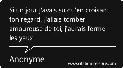 Si un jour j'avais su qu'en croisant ton regard, j'allais tomber amoureuse de toi, j'aurais fermé les yeux.