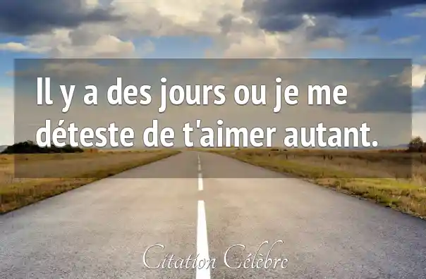 Il y a des jours ou je me déteste de t'aimer autant.