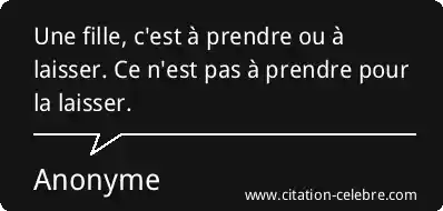 Une fille, c'est à prendre ou à laisser. Ce n'est pas à prendre pour la laisser.