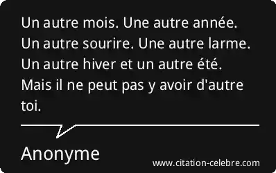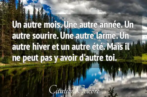 Un autre mois. Une autre année. Un autre sourire. Une autre larme. Un autre hiver et un autre été. Mais il ne peut pas y avoir d'autre toi.
