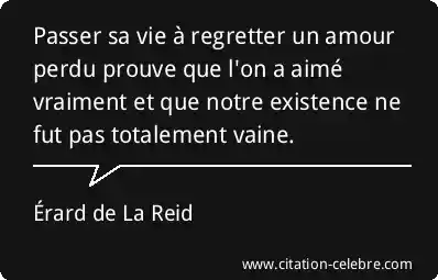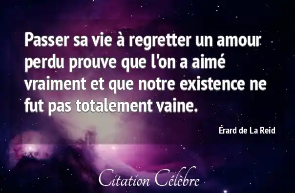 Passer sa vie à regretter un amour perdu prouve que l'on a aimé vraiment et que notre existence ne fut pas totalement vaine.