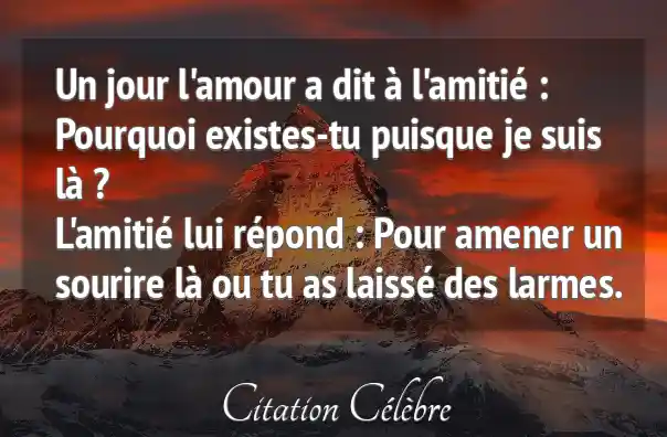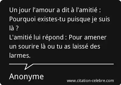 Cette citation s'inscrit dans une longue tradition littéraire et philosophique qui oppose et compare l'Amour et l'Amitié. Depuis l'Antiquité (Aristote, Cicéron) jusqu'à la Renaissance (Montaigne) et au-delà, la nature et la valeur de ces deux liens ont été débattues. Cependant, cette formulation spécifique, avec son style de dialogue direct, semble être une création plus contemporaine, très adaptée à la culture numérique et aux réseaux sociaux, où elle est massivement partagée pour sa concision et son impact émotionnel.
