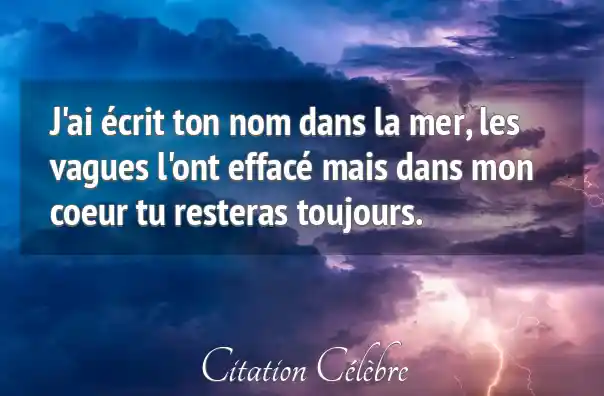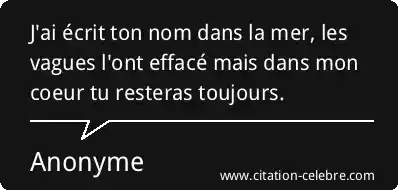 J'ai écrit ton nom dans la mer, les vagues l'ont effacé mais dans mon coeur tu resteras toujours.