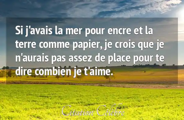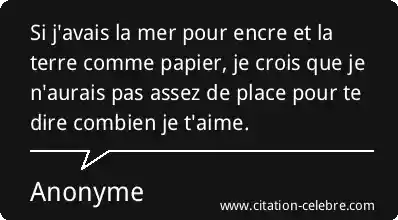 Si j'avais la mer pour encre et la terre comme papier, je crois que je n'aurais pas assez de place pour te dire combien je t'aime.