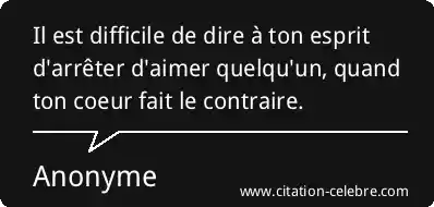 Il est difficile de dire à ton esprit d'arrêter d'aimer quelqu'un, quand ton coeur fait le contraire.