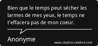 Bien que le temps peut sécher les larmes de mes yeux, le temps ne t'effacera pas de mon coeur.