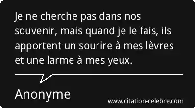 Je ne cherche pas dans nos souvenir, mais quand je le fais, ils apportent un sourire à mes lèvres et une larme à mes yeux.