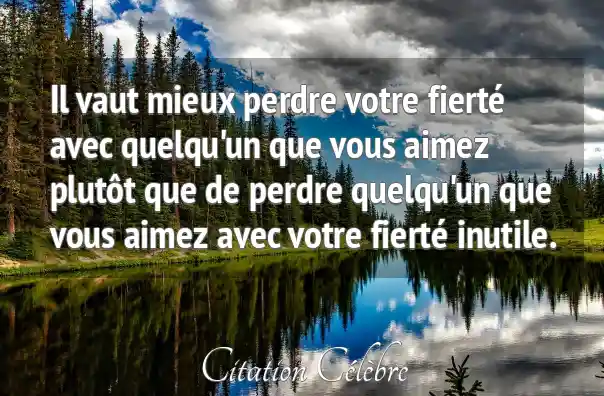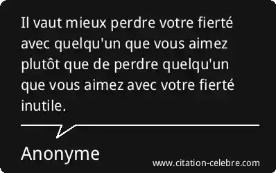 Il vaut mieux perdre votre fierté avec quelqu'un que vous aimez plutôt que de perdre quelqu'un que vous aimez avec votre fierté inutile.