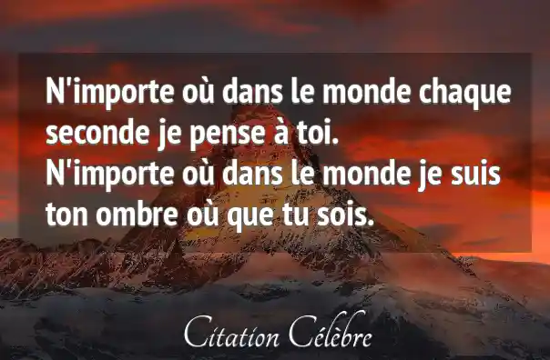 N'importe où dans le monde chaque seconde je pense à toi. N'importe où dans le monde je suis ton ombre où que tu sois.