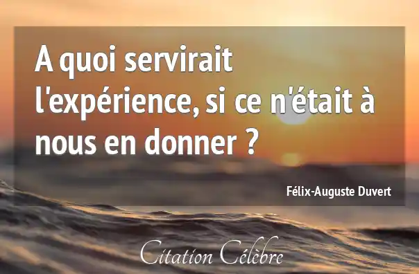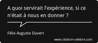 A quoi servirait l'expérience, si ce n'était à nous en donner ?