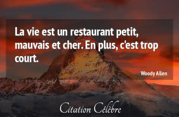 La vie est un restaurant petit, mauvais et cher. En plus, c'est trop court.