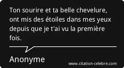 Ton sourire et ta belle chevelure, ont mis des étoiles dans mes yeux depuis que je t'ai vu la première fois.
