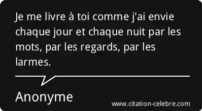Citation Anonyme jour : Je me livre à toi comme j'ai envie chaque jour...