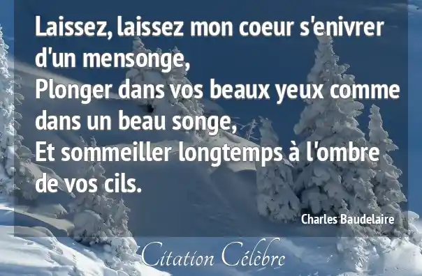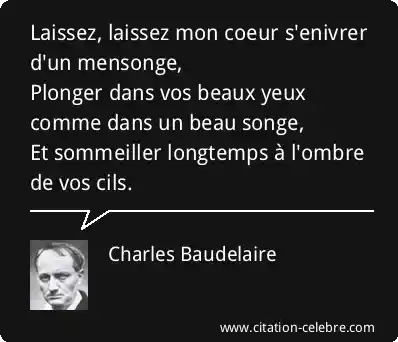 Laissez, laissez mon coeur s'enivrer d'un mensonge,Plonger dans vos beaux yeux comme dans un beau songe,Et sommeiller longtemps à l'ombre de vos cils.