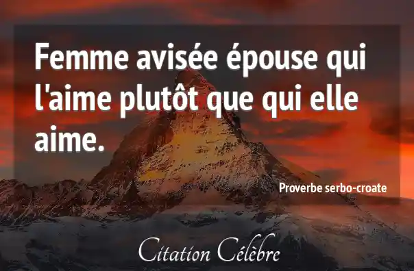 Femme avisée épouse qui l'aime plutôt que qui elle aime.